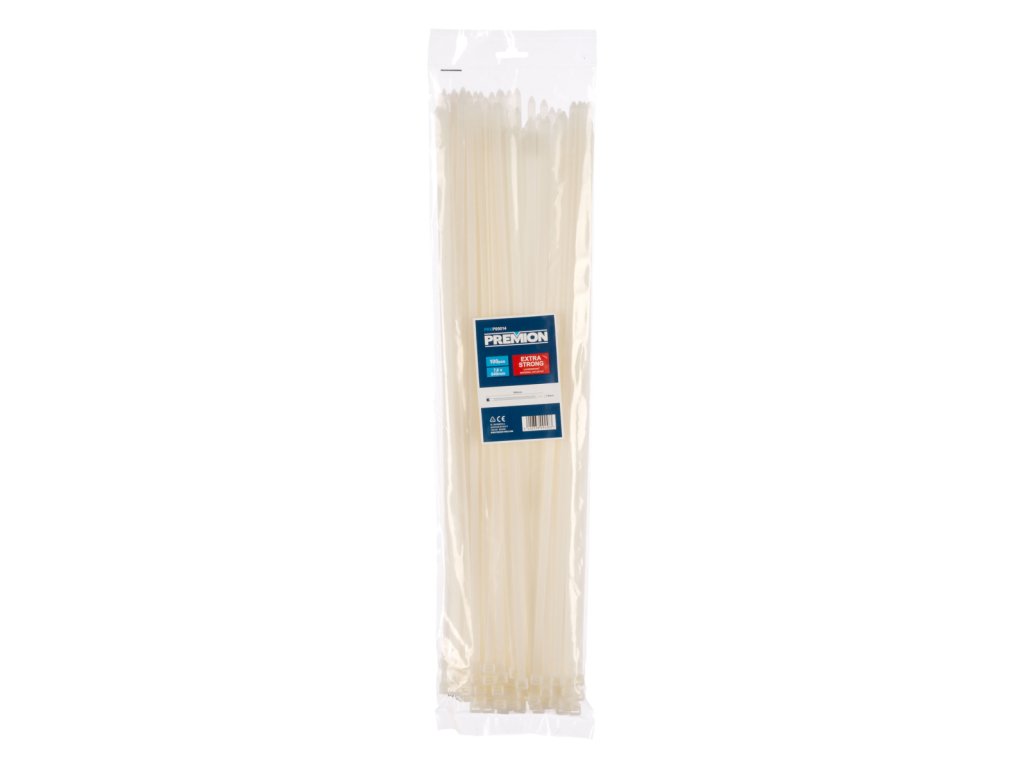 Tato sada PREP00014 od Premion obsahuje 100 ks bílých nylonových stahovacích pásek 7,6 x 540 mm. Tyto extra pevné stahovací pásky mají vysokou pevnost v tahu. Použijte je k úhlednému svázání kabelů nebo ke snadnému vzájemnému spojení předmětů. Úhledně ukryjte kabely a vodiče například ve své kanceláři nebo dílně tím, že je svážete pomocí těchto kabelových stahovacích pásků. Navíc jsou tyto stahovací pásky odolné vůči UV záření.