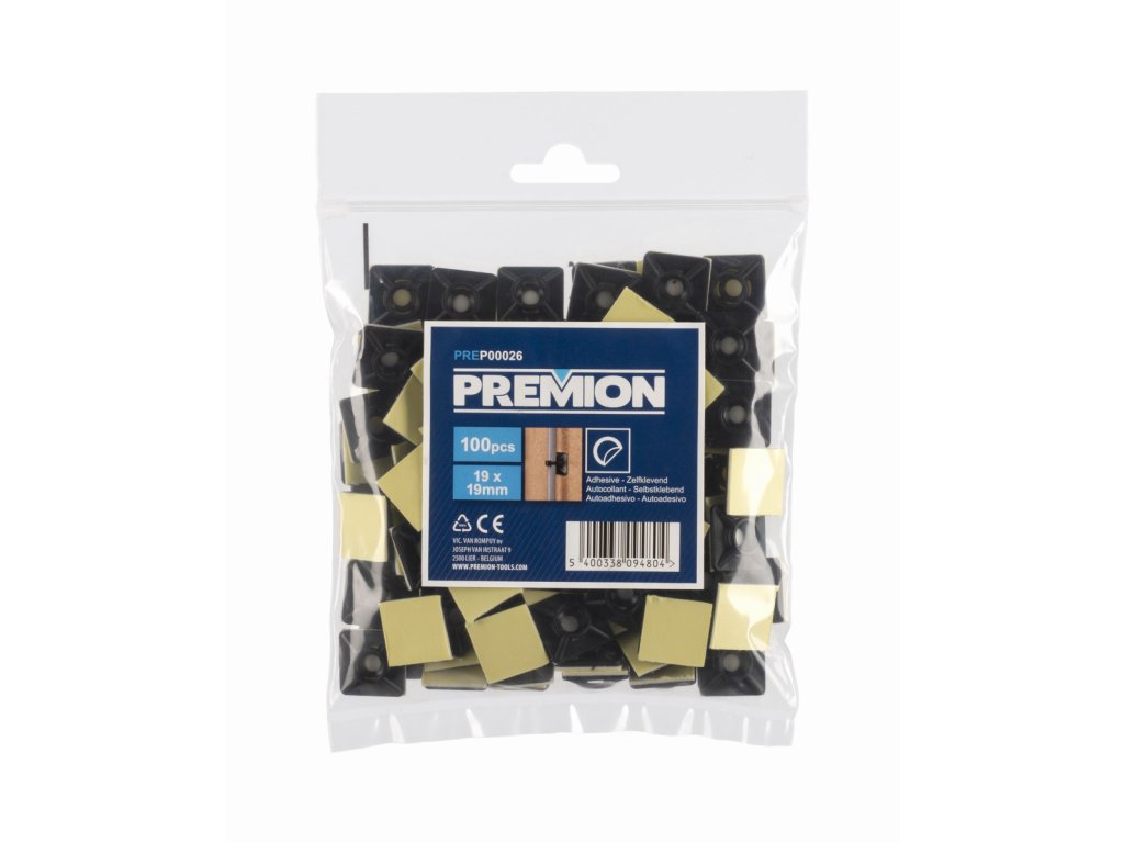 Tato sada PREP00026 od Premion obsahuje 100 ks kabelových příchytek v černé barvě. Tyto příchytky jsou opatřeny lepící páskou pro uchycení na různé povrchy. Vhodné pro pásky do šířky 4mm.