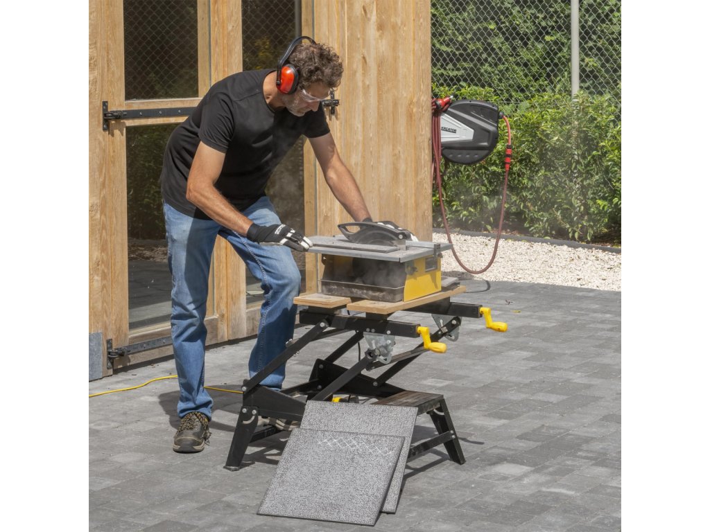 Při obkládání vlastních podlah nebo stěn bude nutné některé dlaždice nařezat na míru. Usnadněte si život používáním této elektrické řezačky dlaždic POWX2300 od Powerplus. Dodává se s diamantovým kotoučem, takže se můžete okamžitě pustit do práce. Tuto řezačku můžete použít k řezání dlaždic, žuly, mramoru a (přírodního) kamene. Na rozdíl od ruční řezačky dlaždic umožňuje tato elektrická verze provádět rovné řezy, stejně jako řezy ve tvaru L, U a pokosové řezy. Diamantový kotouč je nepřetržitě chlazen vestavěnou nádržkou na vodu, která prodlužuje životnost řezného kotouče, zajišťuje čistší řezy a snižuje prašnost. Tato řezačka na dlaždice není určena pouze k řezání měkkých keramických obkladů, ale dokáže si poradit i s tvrdšími materiály, jako je mramor nebo přírodní kámen. Díky indukčnímu motoru má stroj delší životnost, vyžaduje méně údržby a produkuje méně hluku než stroj s běžným motorem. Spínač je prachotěsný a řezačka je vybavena proudovým chráničem. Ochranný kryt udržuje bezpečnou vzdálenost mezi vašimi rukama a ostrým řezným kotoučem.