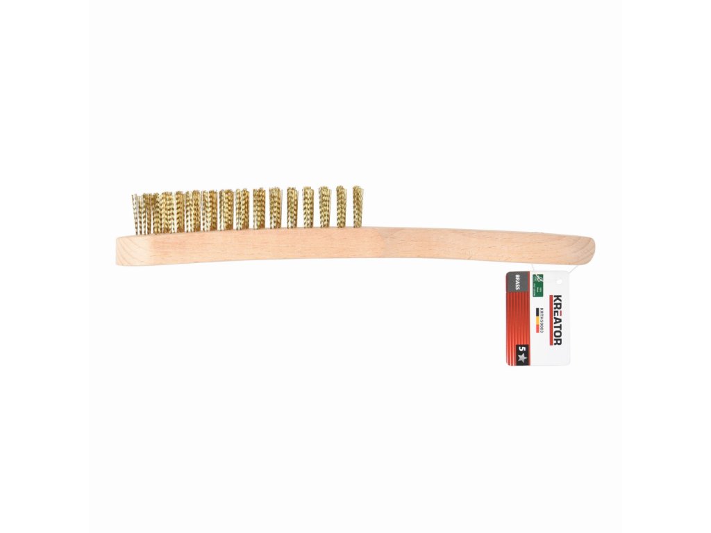 Ruční drátěný mosazný kartáč, dřevěná rukojeť. Tento dřevěný drátěný kartáč KRTH50003 z naší řady Kreator má 56 řad mosazných štětin pro odstranění nečistot a rzi z kovu. Po použití můžete kartáč zavěsit pomocí praktického závěsného očka na rukojeti. Protiskluzová rukojeť zajišťuje pevný úchop a...