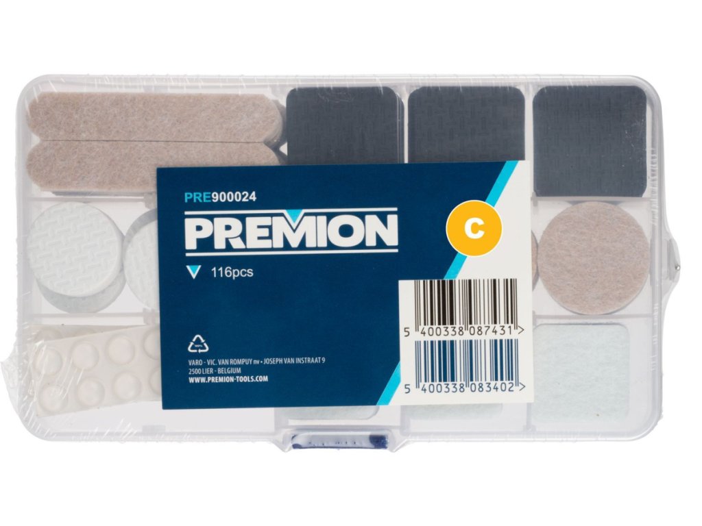 Chraňte své podlahy a snižte hluk při stěhování nábytku s plstěnými podložkami Premion. Tato rozsáhlá sada obsahuje 116 samolepících plstěných podložek v různých velikostech, které zajistí, že máte vždy ten správný střih pro jakýkoli kus nábytku. Podložky jsou ideální pro použití na židle, stoly, skříně a další nábytek, který by mohl poškodit povrch podlahy. Jednoduchá instalace díky samolepící vrstvě umožňuje okamžité použití a dlouhodobou ochranu. Vyberte si Premion pro efektivní ochranu podlah a tiché stěhování nábytku.
