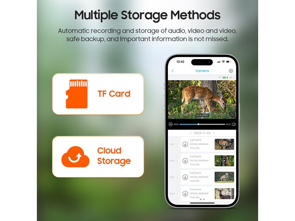 - Úložiště na dosah: Podpora micro SD karty až 128 GB nebo volitelné cloudové úložiště vám poskytne dostatek prostoru pro všechny záznamy.