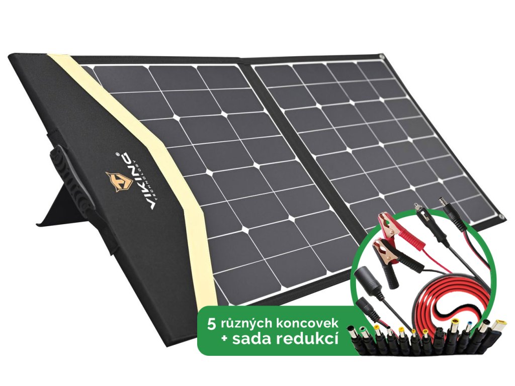 Lehký a výkonný solární nabíjecí panel pro všechna vaše elektronická zařízení. Se svými 120W(17,6V/6,82A), je ideální volbou pro nabíjení středních a velkých generátorů značky VIKING.