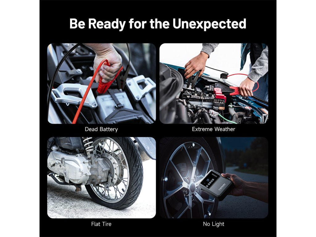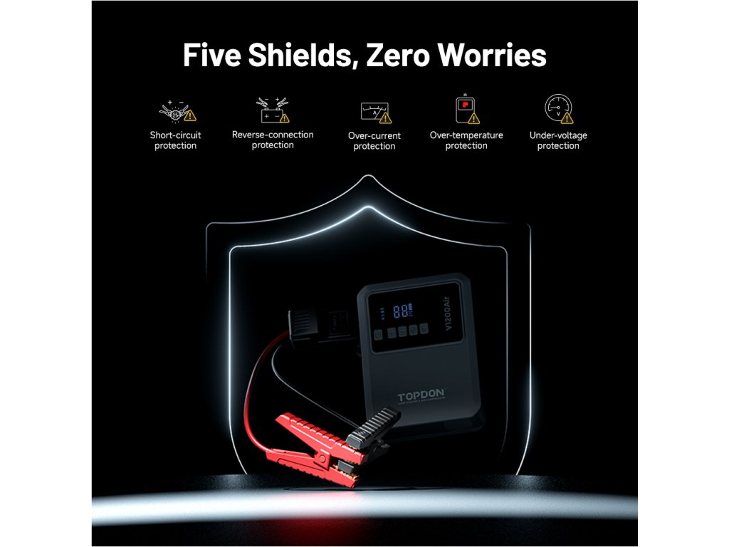 TOPDON V1200 Air je ideálním řešením pro každého, kdo chce být připraven na nečekané situace – ať už na silnici, v kempu nebo při každodenním používání.