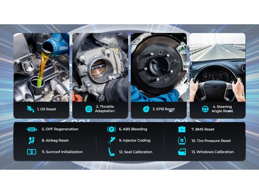 Všimli jste si kontrolky údržby? Nebojte se - naše funkce resetování oleje vám kryje záda! TopScan Pro hrdě představuje komplexní sadu 13 funkcí resetování: Reset oleje, přizpůsobení plynu, reset EPB, reset úhlu řízení a další. . Diagnostikujte své vozidlo, vyřešte výstražné kontrolky.