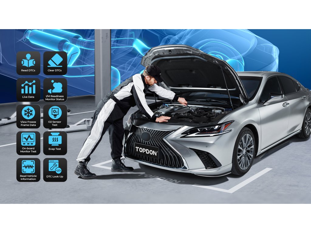 Přístroj TopScan Pro od společnosti TOPDON funguje jako čtečka kódů OBD2 a provádí všech 10 režimů testování OBD2 zdarma po celou dobu životnosti, což vám umožní přístup k důležitým informacím o ještě více vozidlech. Podporuje také všechny funkce, včetně čtení DTC, vymazání DTC, živých dat, stavu monitoru připravenosti I/M, zobrazení dat Freeze Frame, testování snímače O2, testování palubního monitoru, testování výparů, čtení informací o vozidle a vyhledávání DTC.