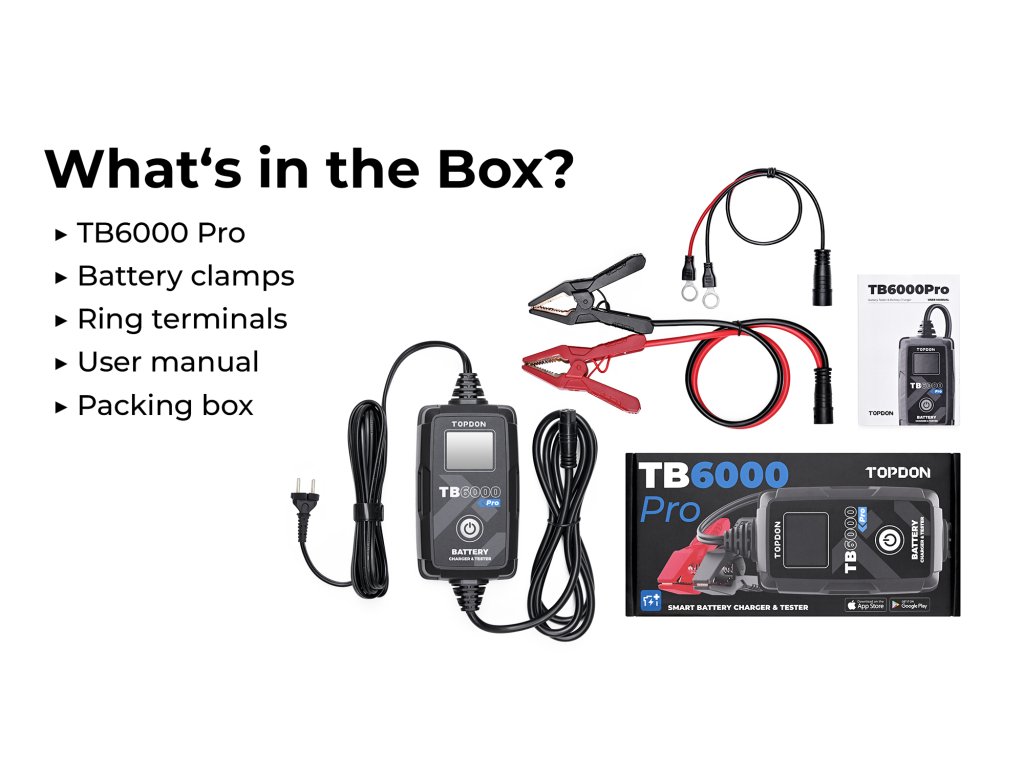 TB6000Pro podporuje podrobné testy nabíjení a 'cranking' testy pro 12V a 24V a poskytuje vynikající diagnostiku baterií prostřednictvím mobilní aplikace.