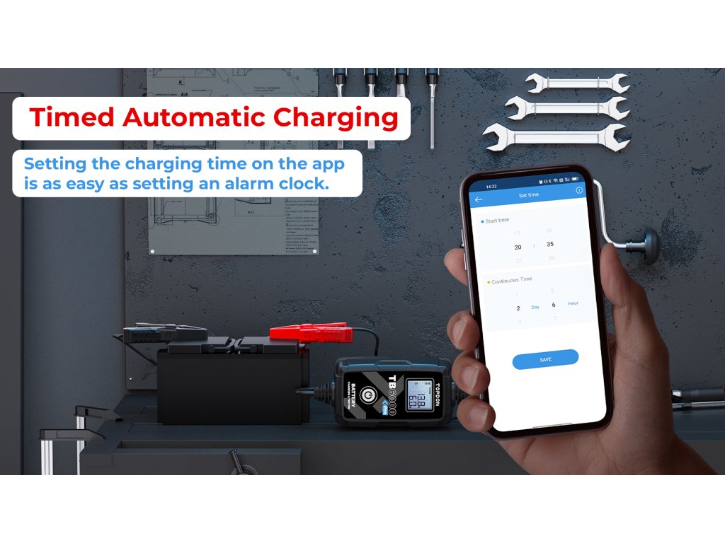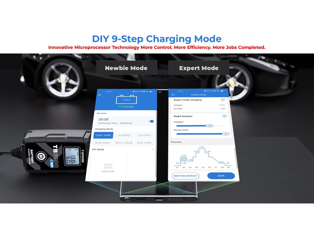 Jste už unavení individuálním nastavováním nabíjení? Nechte TB6000Pro udělat práci za vás. Patentované 9stupňové inteligentní nabíjení společnosti TOPDON poskytuje vaší baterii optimalizovaný, udržovaný a integrovaný proces nabíjení.