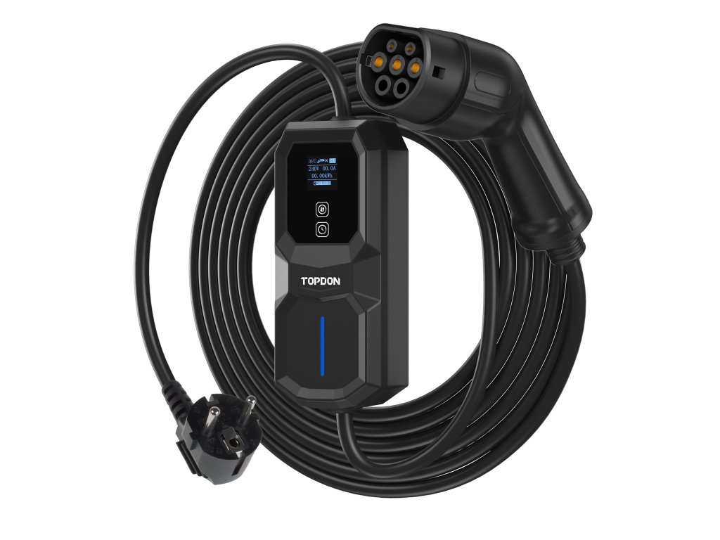 TOPDON PulseQ AC Portable je užitečné řešení pro nabíjení vašeho elektromobilu na cestách! S TOPDON PulseQ AC Portable můžete nabíjet svůj elektromobil kdykoliv a kdekoliv, kde je elektrická zásuvka.