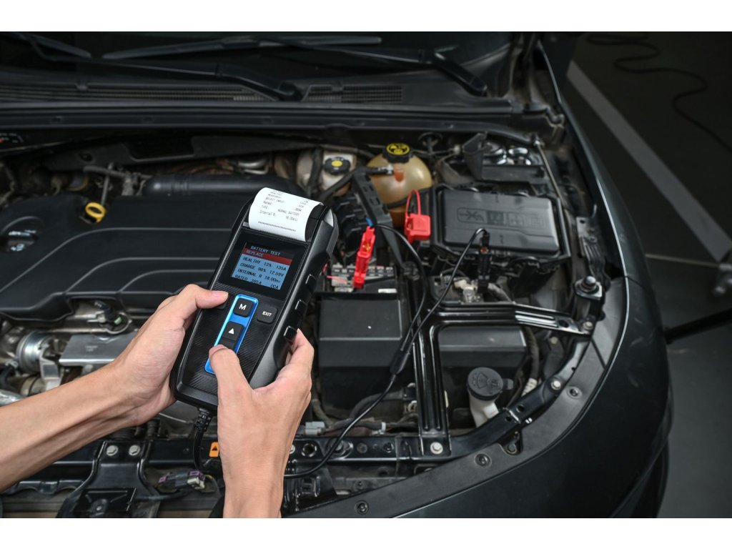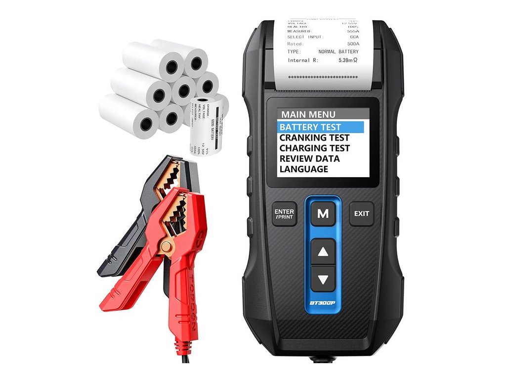 BT300P nejnovější tester 12V akumulátorů s vestavěnou tiskárnou od firmy TOPDON. Přesně změří startovací proud při studeném startu, stav baterie a diagnostikuje běžné závady startovacího a dobíjecího systému.