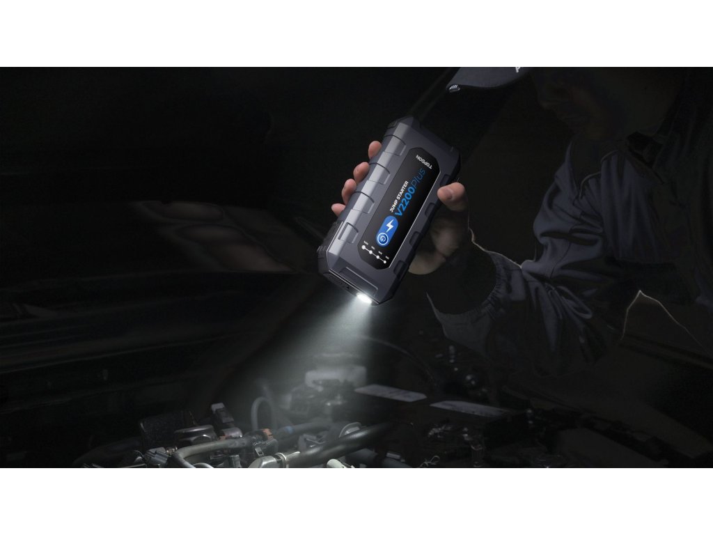 Jump starter s testrem baterií v jednom. Startovací proud až 2200A. Nastartuje dieselové motory do objemu až 6.0L, benzínové motory do objemu až 8.0L a to opakovaně v závislosti na objemu Vašeho motoru. Chytrá aplikace skrze Bluetooth vám poskytne základní diagnostiku stavu vaší baterie a nabíjecího okruhu baterie. Startovací zdroj k nastartování 12V osobních a nákladních vozidel, lodí, motocyklů, skútrů, pickupů, atd.